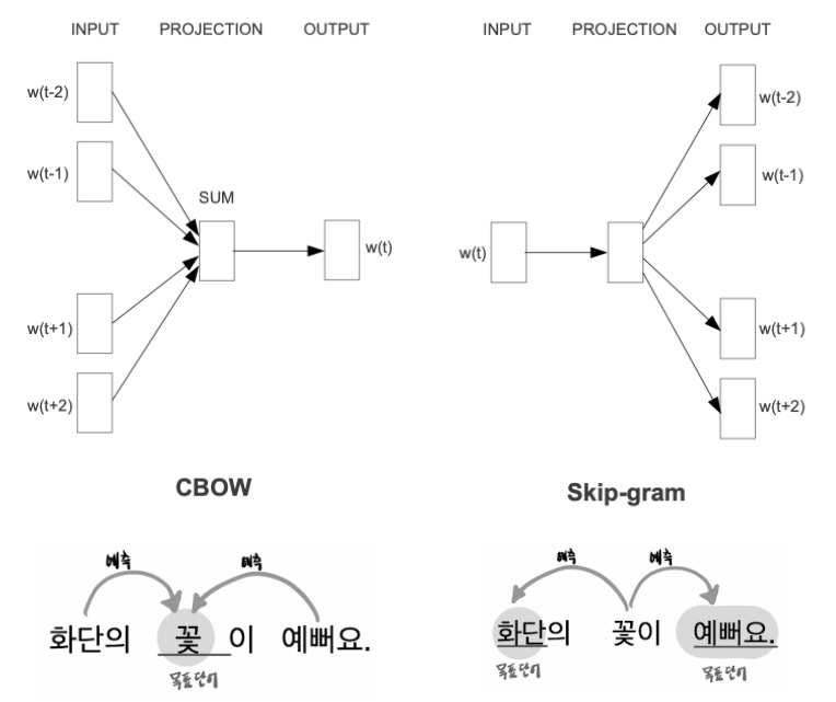 - CBOW (Continuous Bag of Words): Predict the current word from surrounding words.